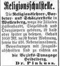 Ausschreibungen der Religionslehrerstelle 1850 /