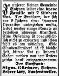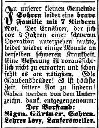 in der Zeitschrift "Der Israelit" vom 22. September 1885: "Sohren,