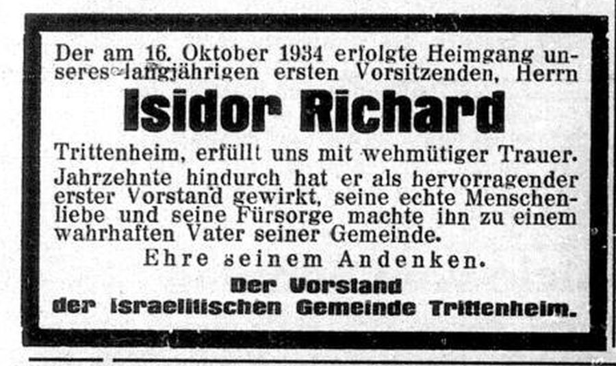 im "Israelitischen Familienblatt" vom 19. Juli 1928: "Trittenheim