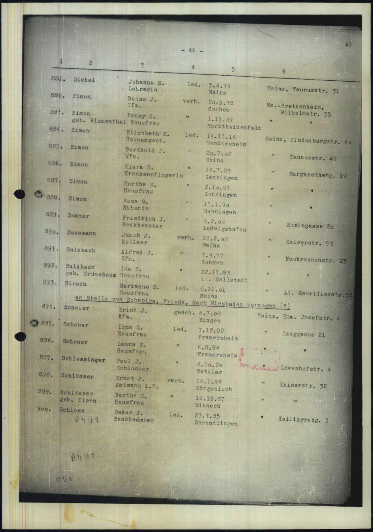 Mainz verzogen, von wo letztere (Adolf, Friederike und Johanna) 1942 in das