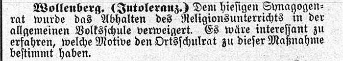 Die jüdischen Einwohner Wollenbergs nahmen aktiv am dörflichen Leben teil.