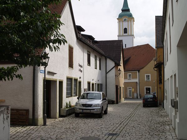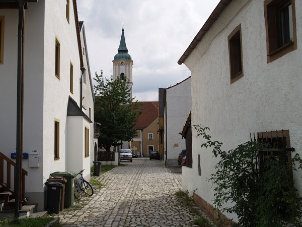 "Judengasse" mit Blick zur Pfarrkirche St. Barbara |