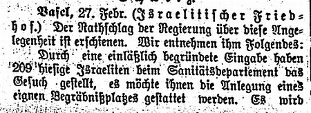 Berner Regierung und der Basler Behörden 1903 ein neuer jüdischer Friedhof angelegt werden