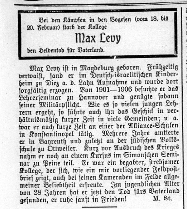 invalide Kriegsteilnehmer usw. Haupterbin ist die jüdische