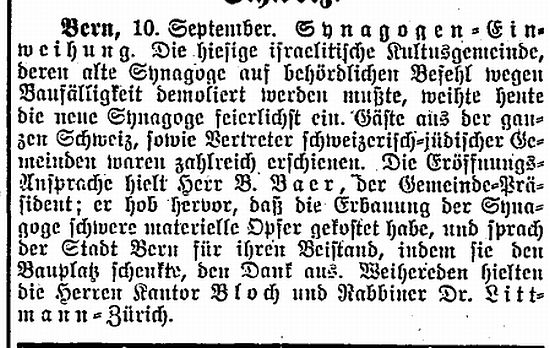 1906: "Bern, 10. September (1906). Synagogen-Einweihung. Die