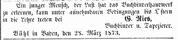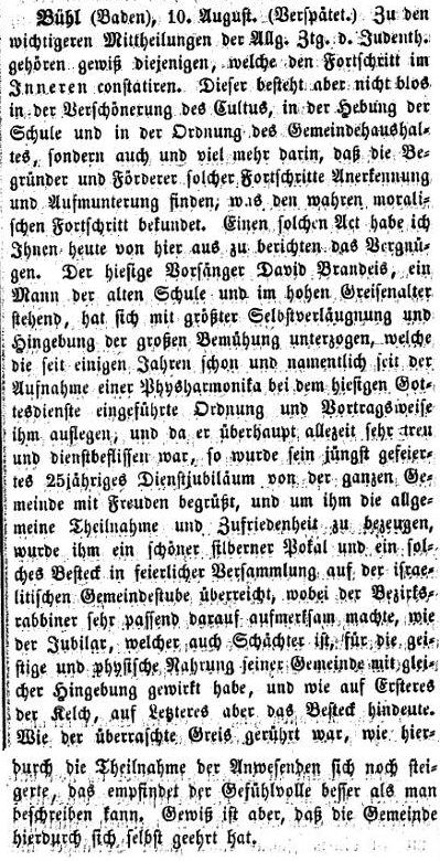 von 1855 bis zu seinem Tod 1869 Bezirksrabbiner in Bühl); Dr. Baruch