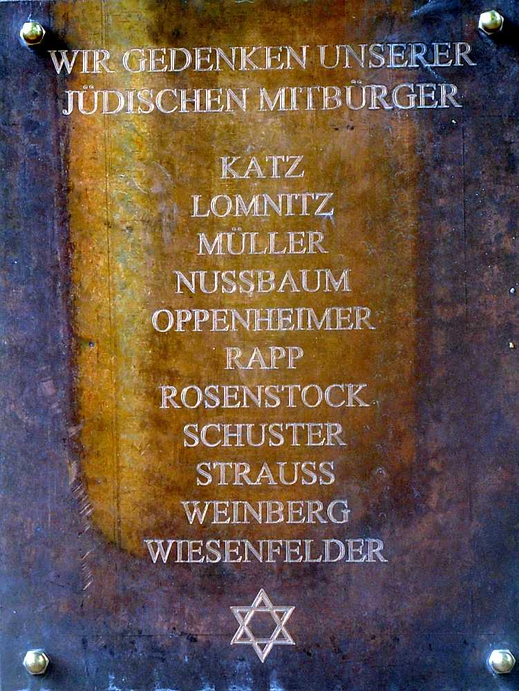 Platz der ehemaligen Synagoge eine Gedenktafel angebracht und der