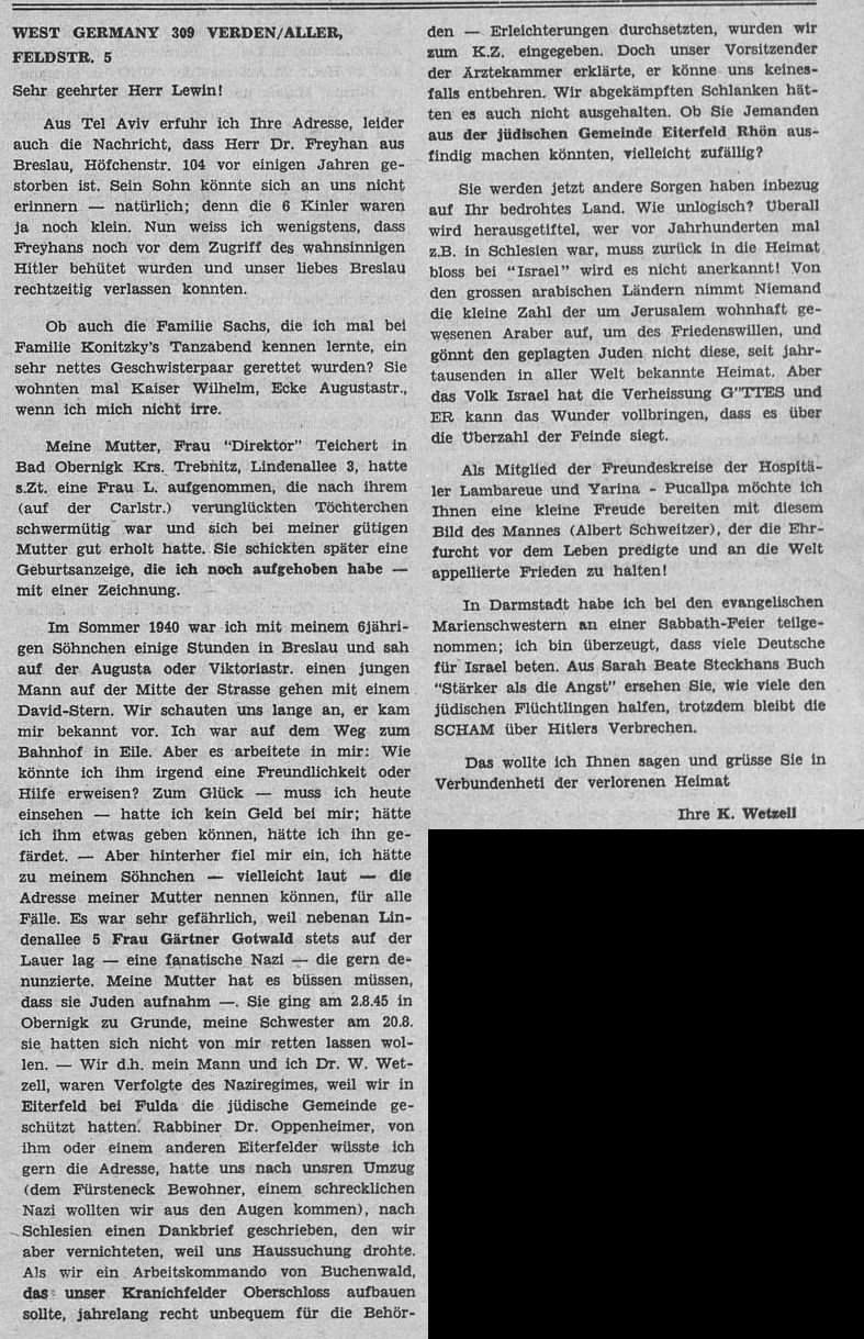 überlebt? Margaretha Reifert-Lutz war es gelungen, Kontakt zu Isaac Levy in