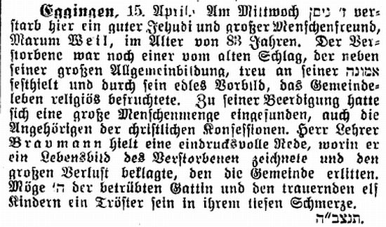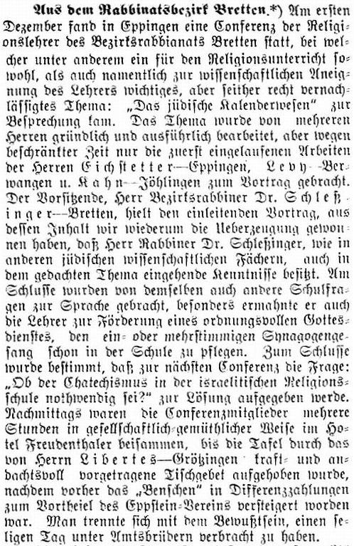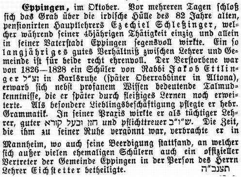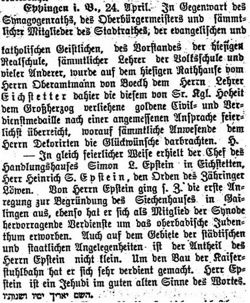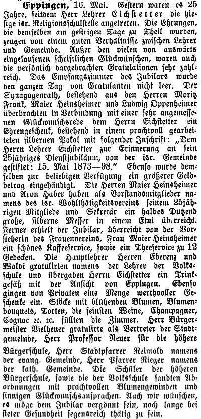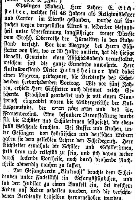 Eichstetter, der von 1873 an in Eppingen wirkte und hier 1898 sein