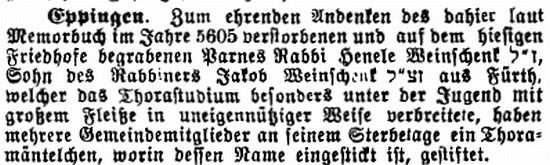 jüdischen Gemeinde Eppingen gehörten seit Auflösung der dortigen Gemeinde