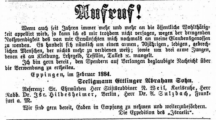 Ettlinger (1880), Hermann Ehrlich (1893), Elias Elikan (1857), Betty Eppsteiner