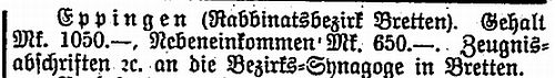 25jähriges Dienstjubiläum feiern konnte (s.u.). Er blieb bis 1903 in Eppingen.