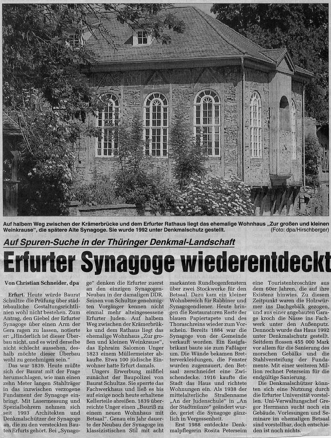 Die damalige Erfurter jüdische Gemeinde war - nach Auflösung einiger anderer