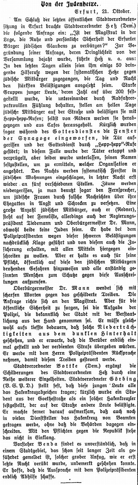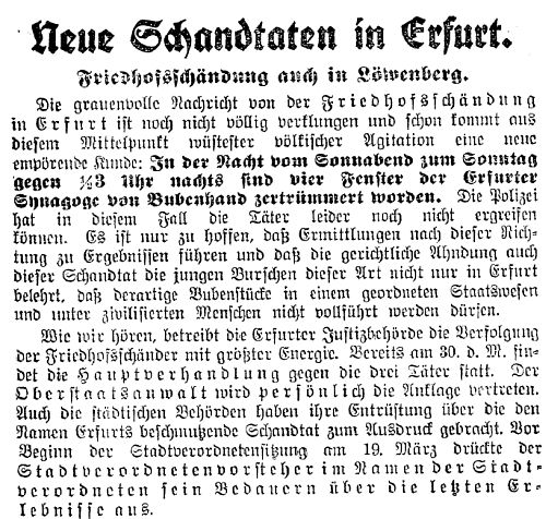 attacks on Jews and their property. In 1933, the Jewish population of Erfurt was