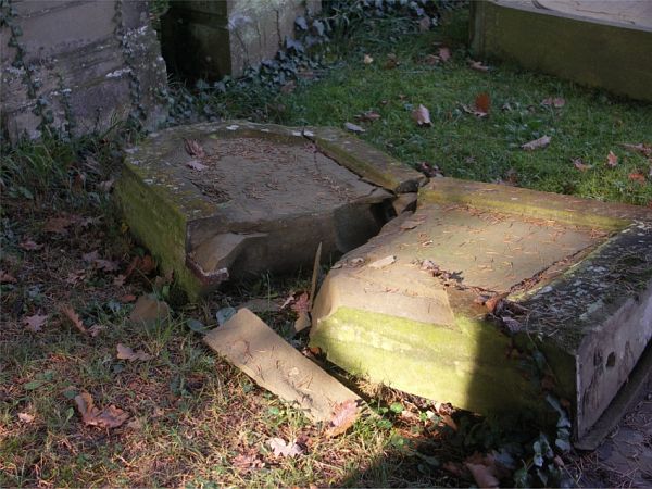 Friedhofes verursachten, indem sie einen Teil der vorhandenen Grabsteine