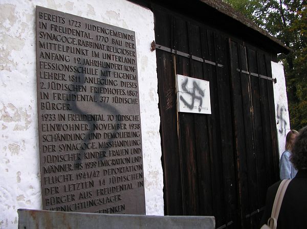 Am Abend des 1. Oktober 2007 haben Unbekannte auf dem jüdischen Friedhof in Freudental eine große Anzahl von Grabsteinen umgestoßen, die Steine beschmiert und weitere Einrichtungen auf dem Friedhof beschädigt. Der damals verursachte Sachschaden belief sich auf rund 100 000 Euro.