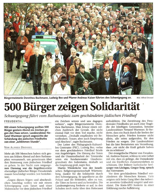 Betroffenheit in Freudental über die Verwüstung des jüdischen