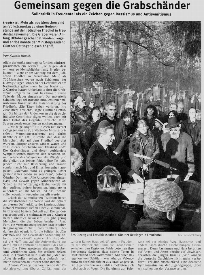 (pro) – Auch ein Jahr nach der schweren Schändung des jüdischen Friedhofs von Freudental hat die Polizei noch keine heiße Spur der neonazistischen Täter.