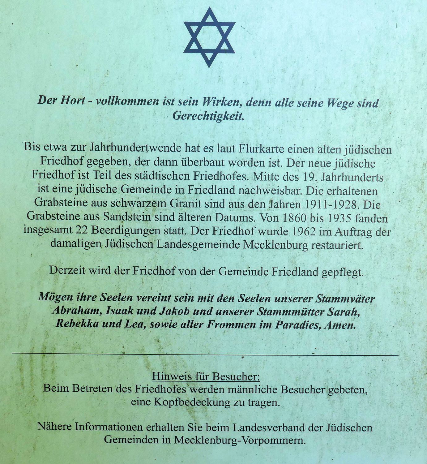 In Friedland gab es einen alten jüdischen Friedhof, zu dem weitere