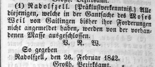 einer Schuldenliquidation - Moses Weil betreffend (1841)