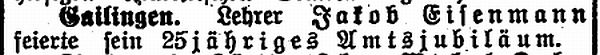 in der Zeitschrift "Der Israelit" vom 25. Mai 1894: "Gailingen,