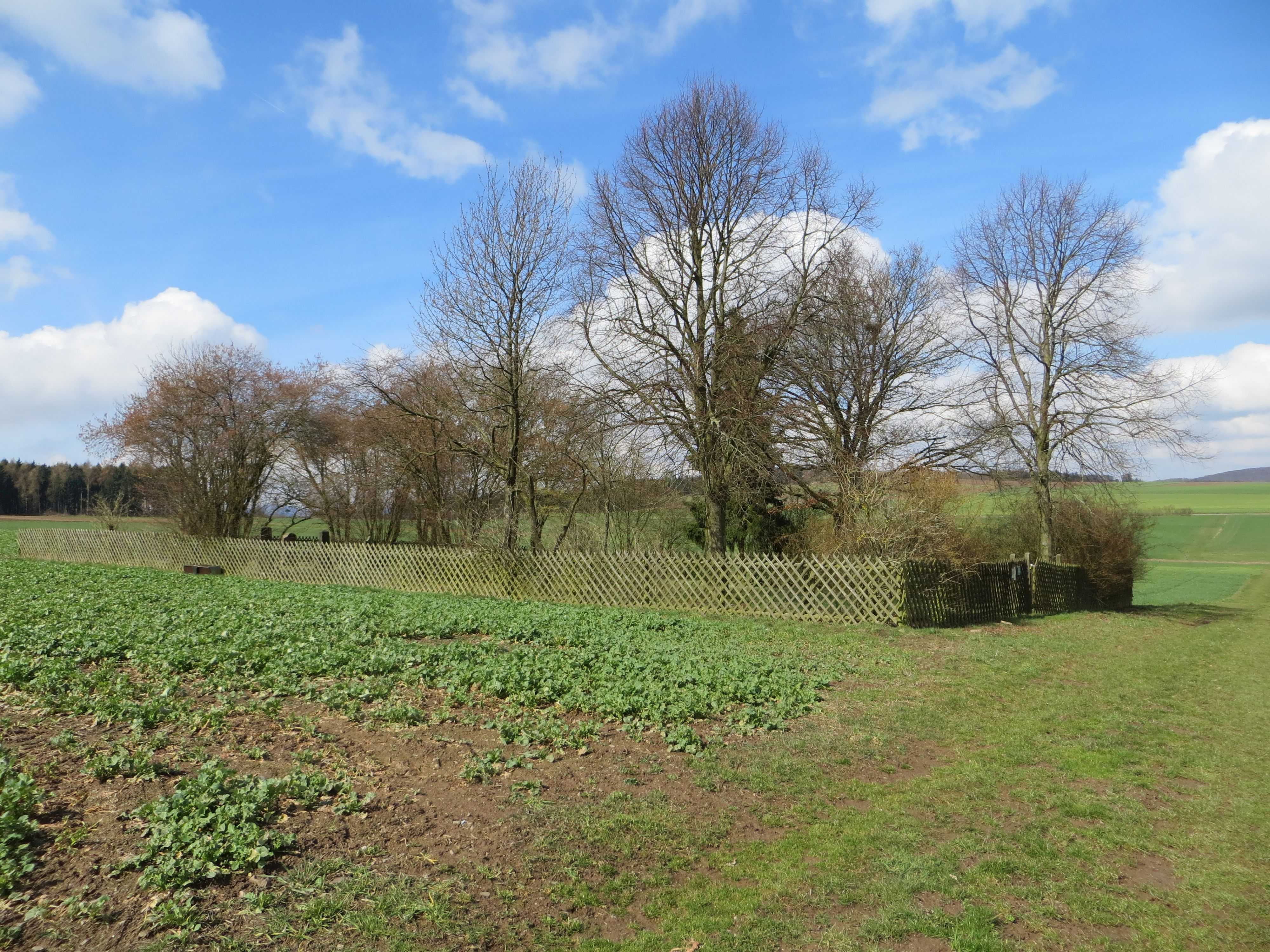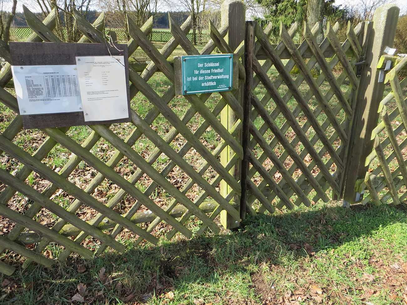 Der Friedhof liegt südwestlich des Ortes inmitten von