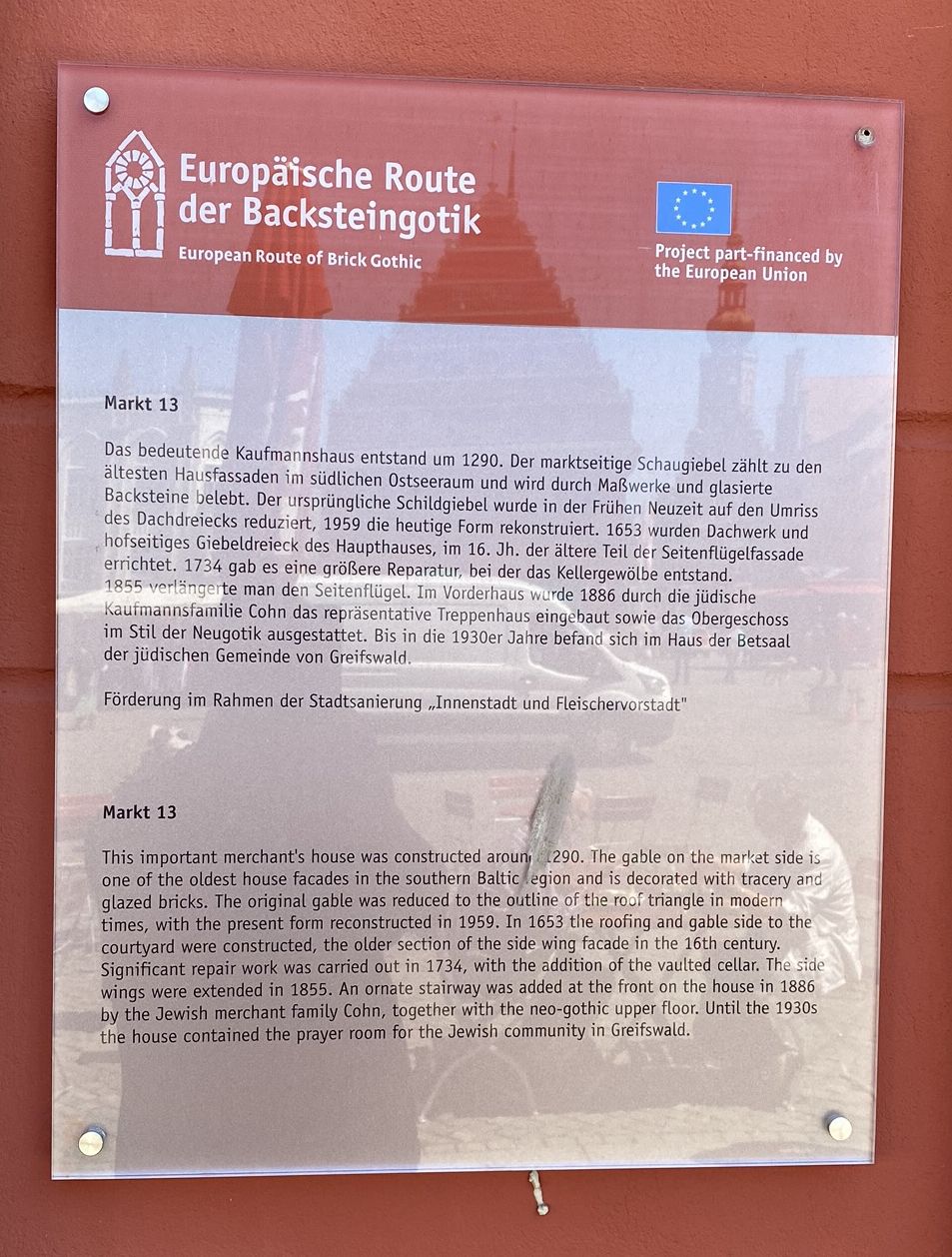 Gebäude Markt 13 mit Hinweistafel zur Geschichte: "Das bedeutende