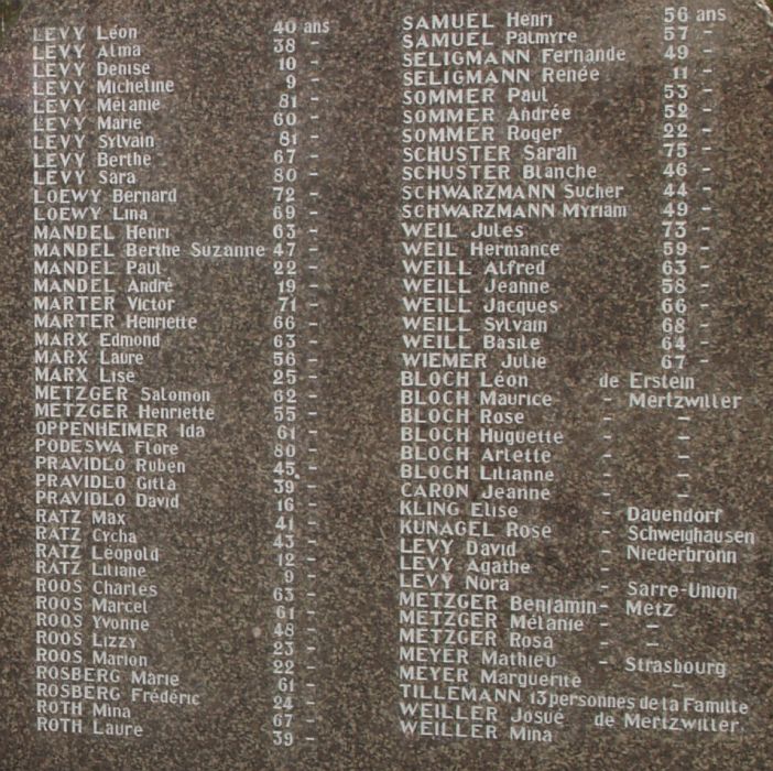 in der Zeit des Holocaust Ermordeten von Hagenau und Umgebung |