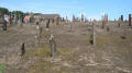 starker Verwitterung gezeichneten Grabsteine; nur teilweise lesbar. |