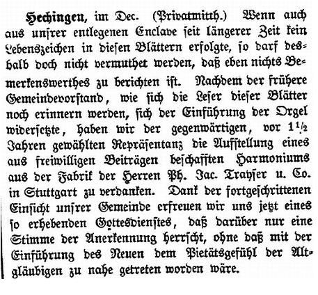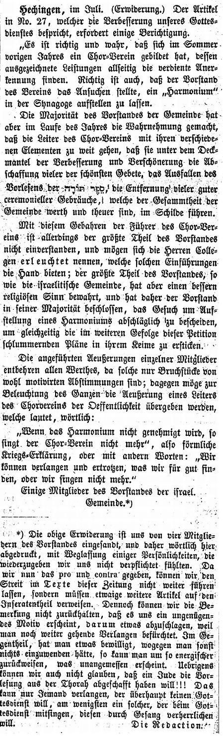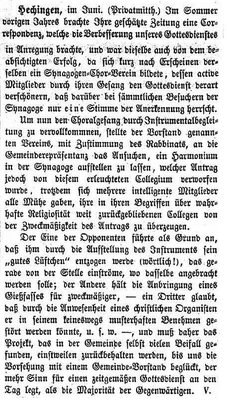 Ein Harmonium wurde in der Synagoge aufgestellt (1870)