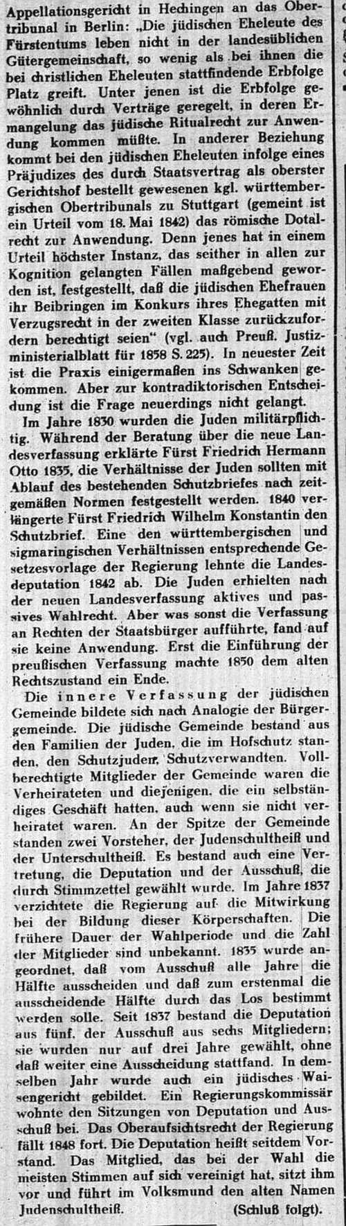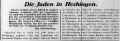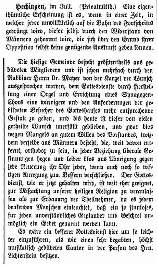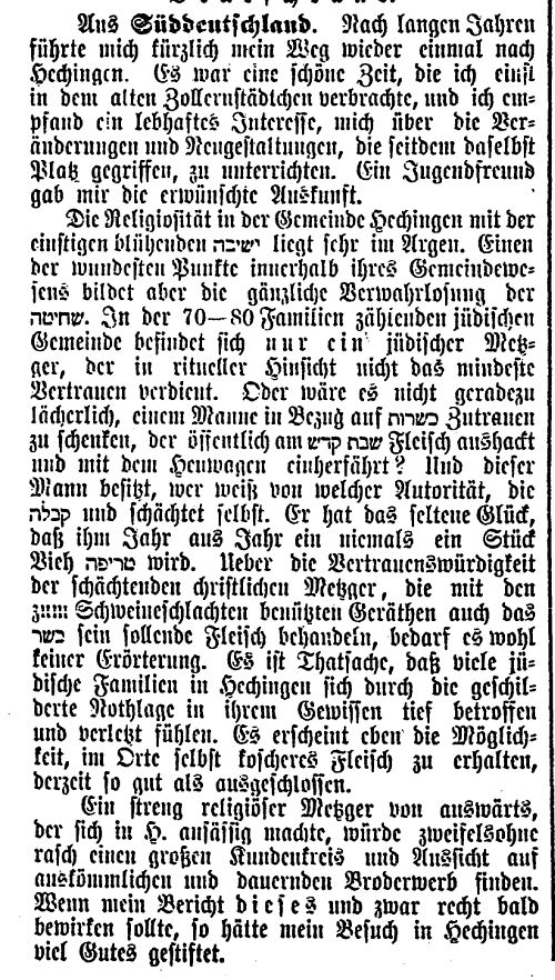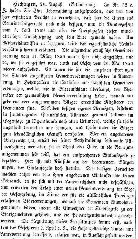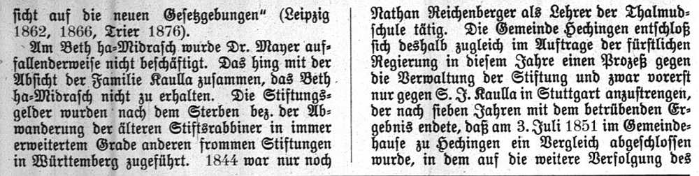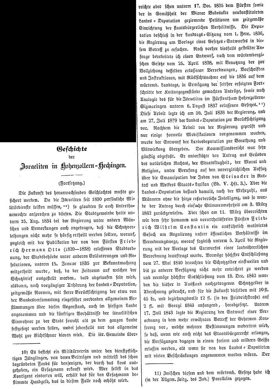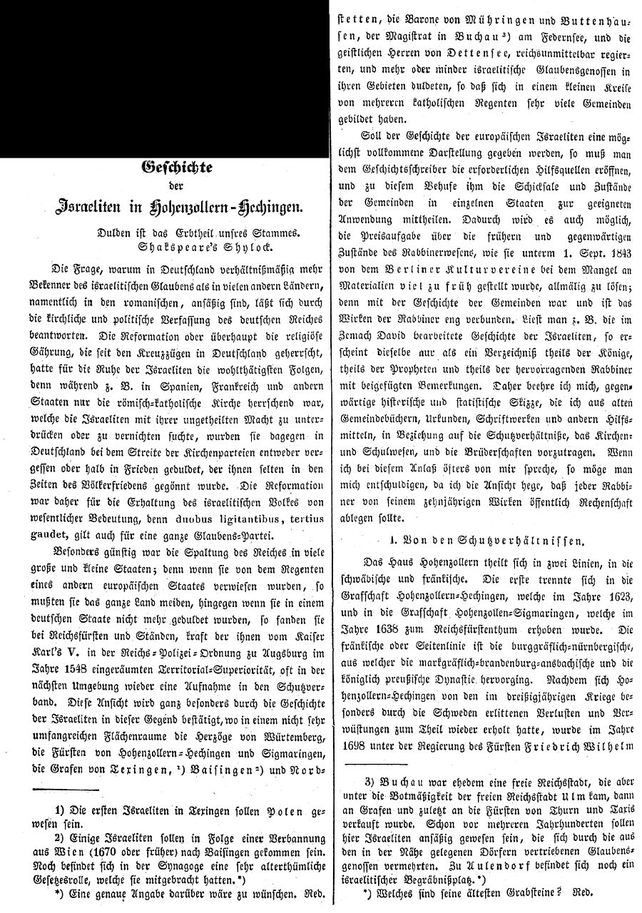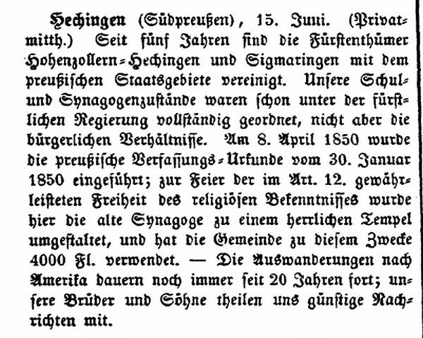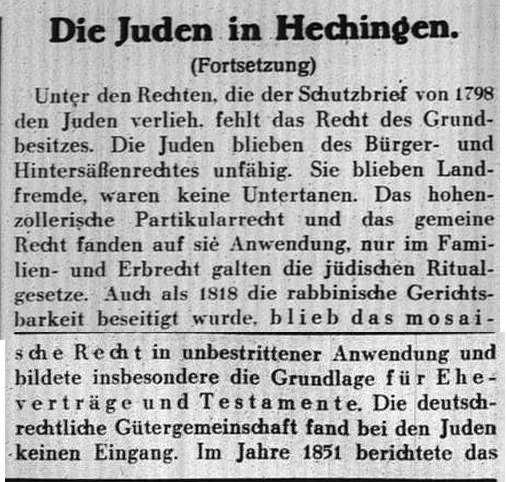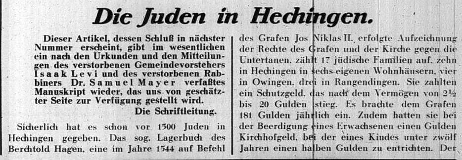Beiträgen zur jüdischen Geschichte in Hechingen wurden in jüdischen Periodika