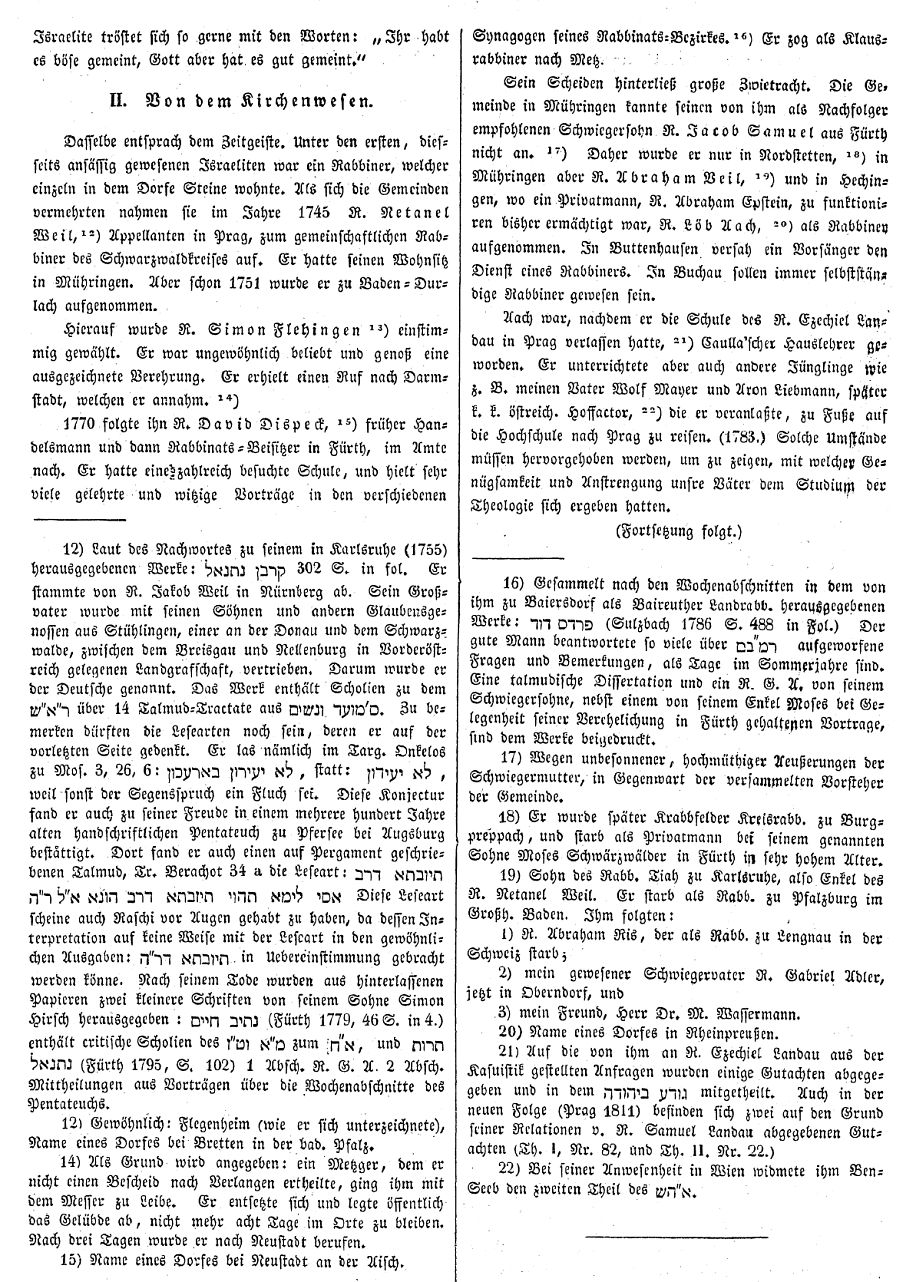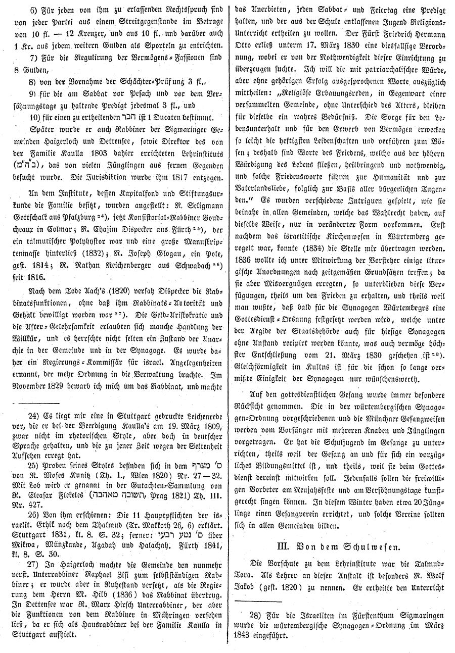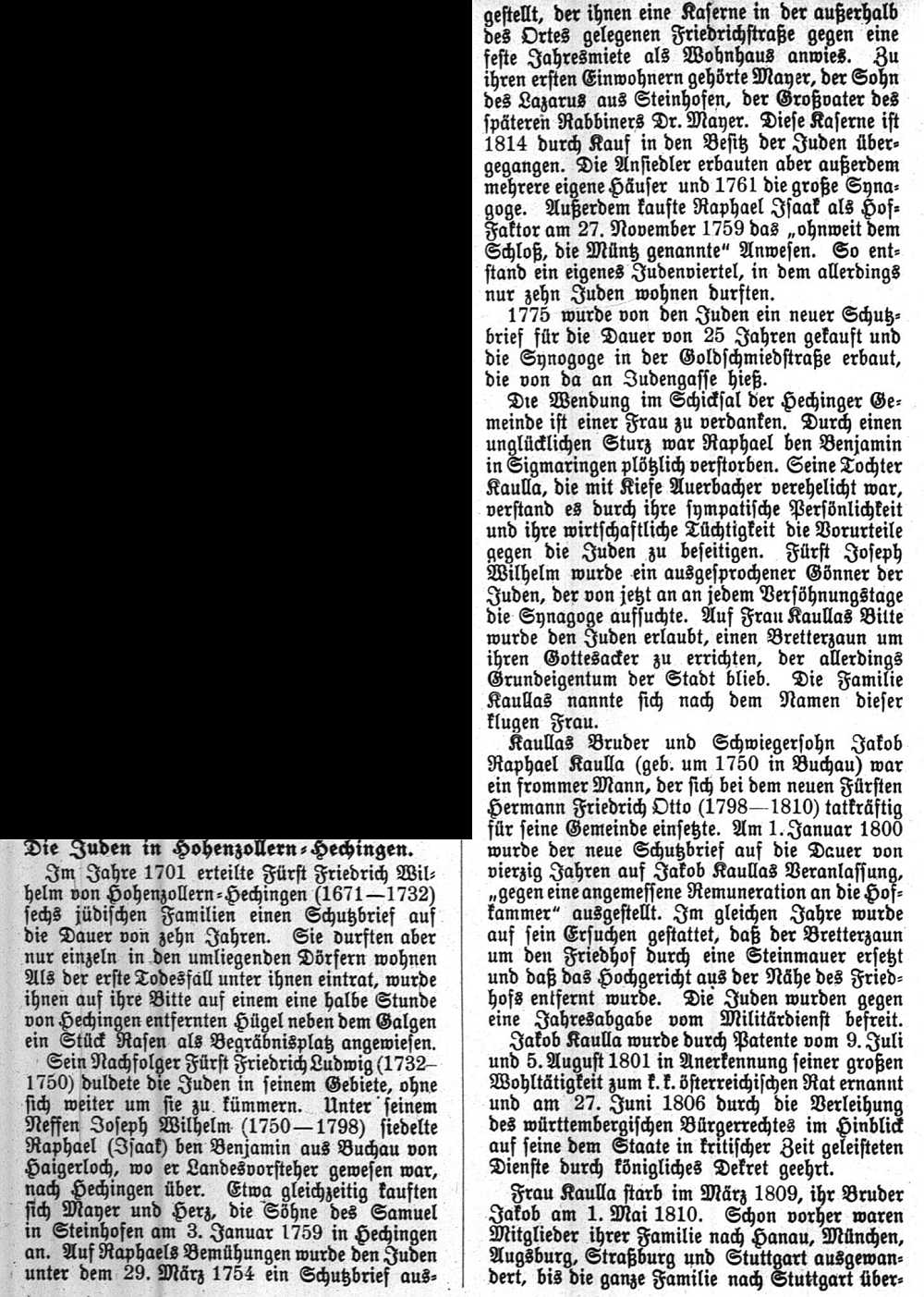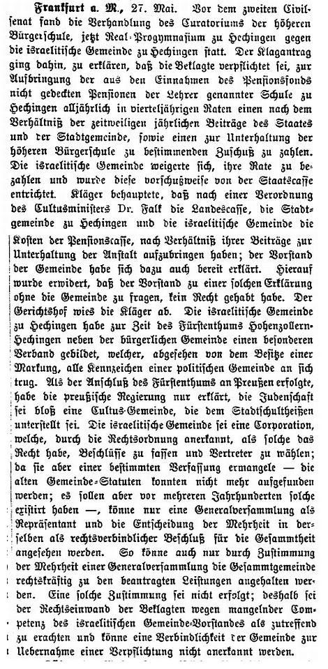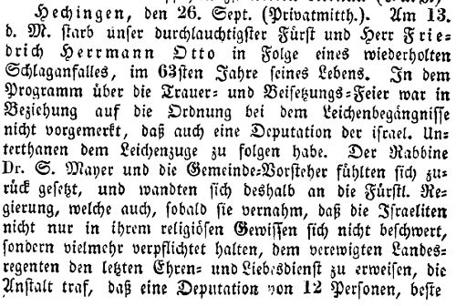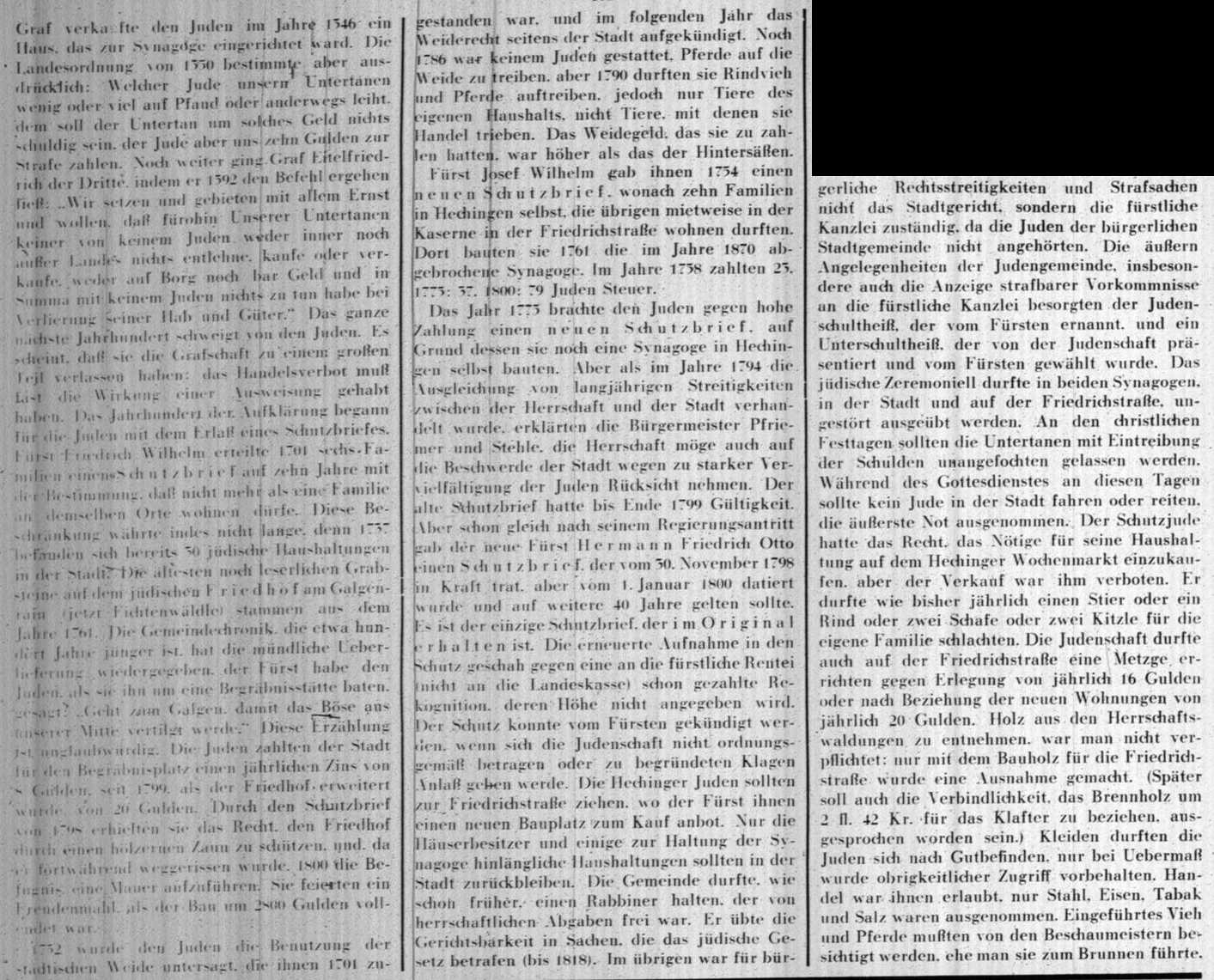 Beiträgen zur jüdischen Geschichte in Hechingen wurden in jüdischen Periodika