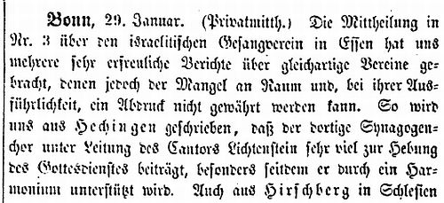 Über den Synagogenchor und das Harmonium in der Synagoge