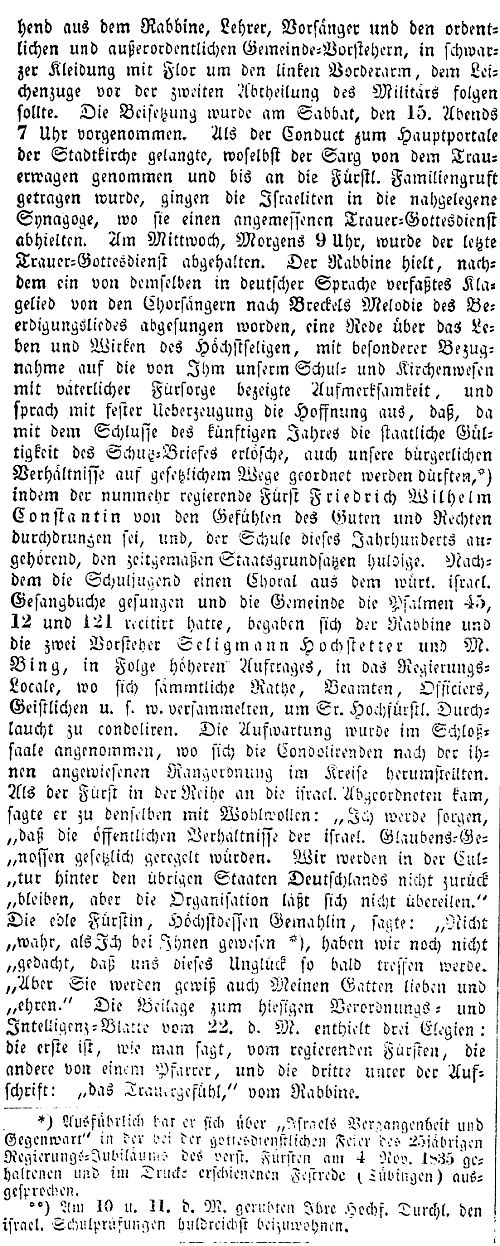 Monats geruhten Ihre Hochfürstliche Durchlaucht den israelitischen