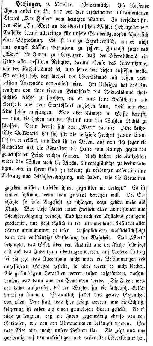 sich "an die israelitischen Wähler Hohenzollerns"
