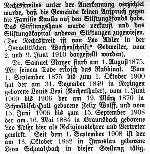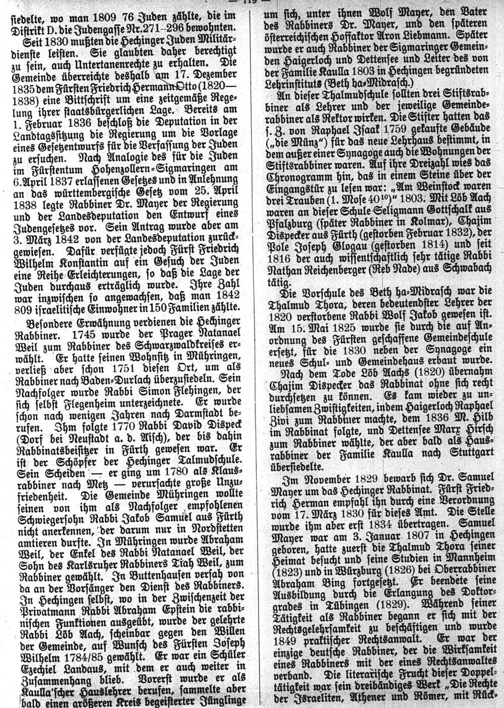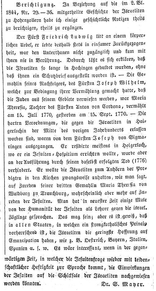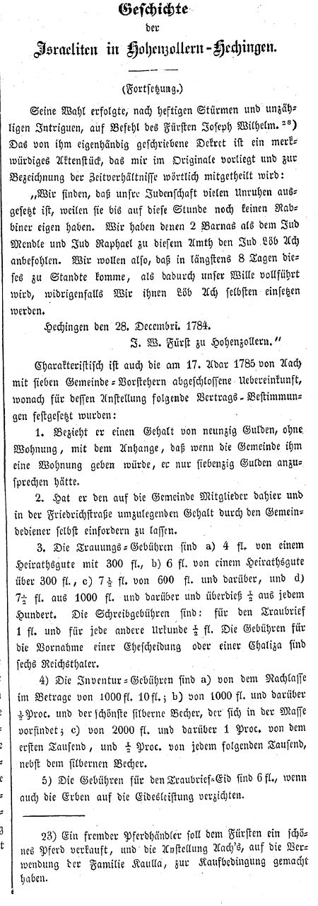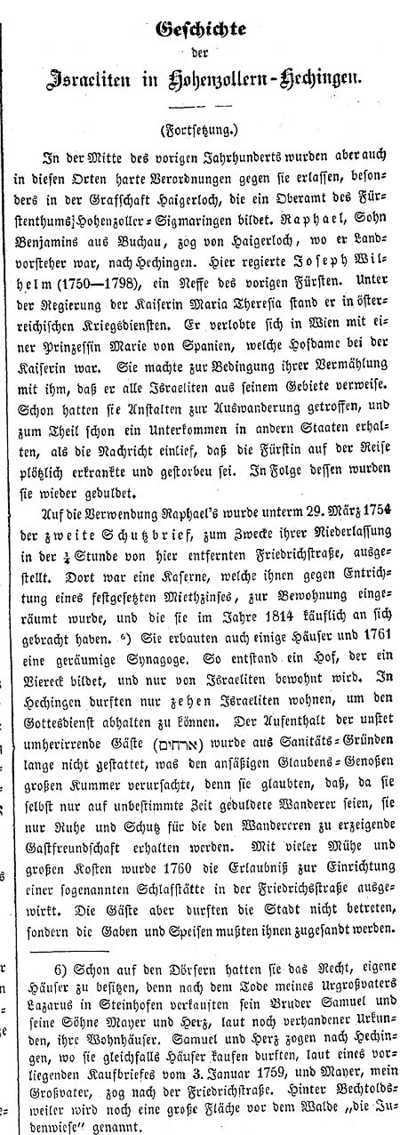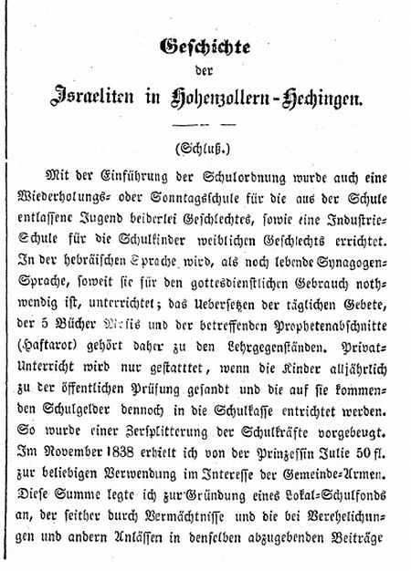 "Geschichte der Israeliten in Hohenzollern-Hechingen" von Dr. Samuel