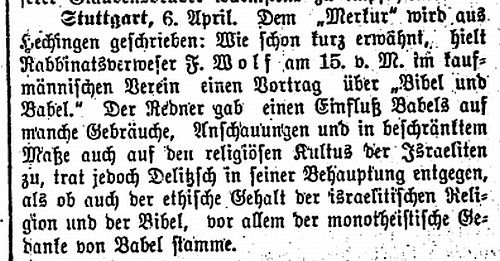 Felix Wolf hielt einen Vortrag über "Bibel und Babel" (1903)