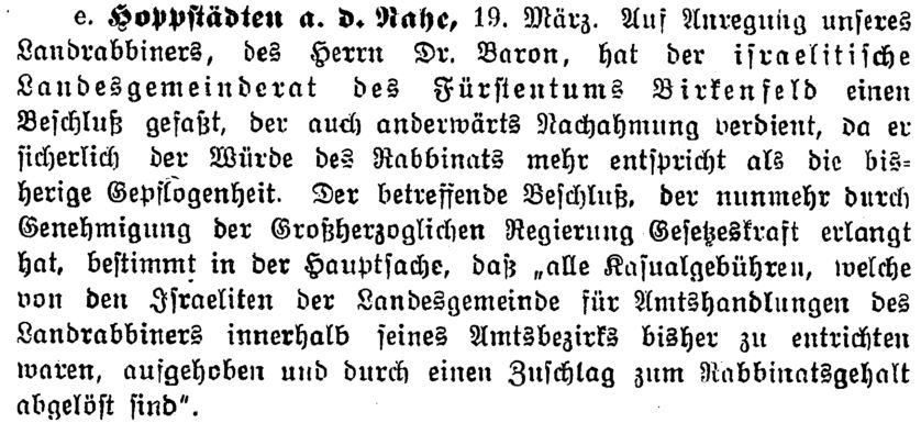 "Hoppstädten an der Nahe. Die Aufhebung aller Kasualgebühren und