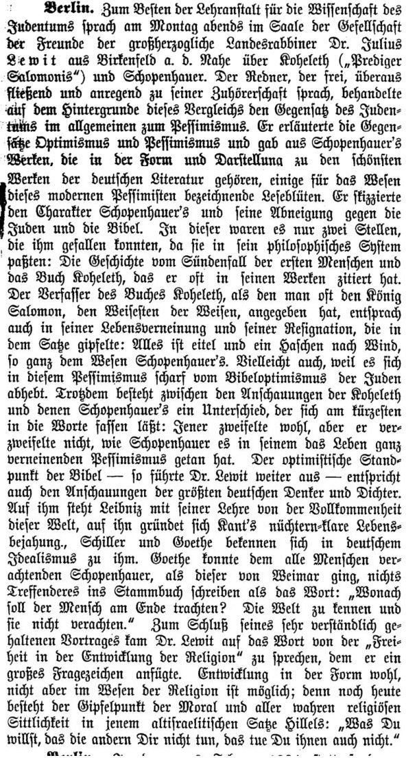 der "Allgemeinen Zeitung des Judentums" vom 7. Dezember 1857: "Bei der jüngsten