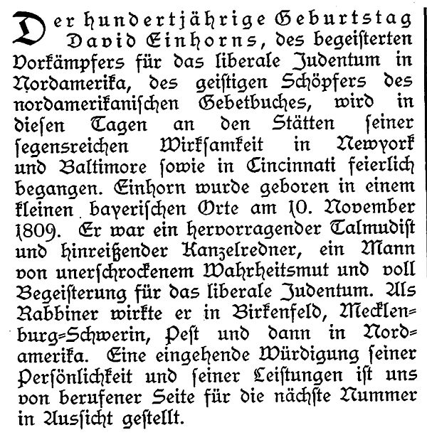 in der Zeitschrift "Der Israelit" vom 11. Juli 1901: "Suche