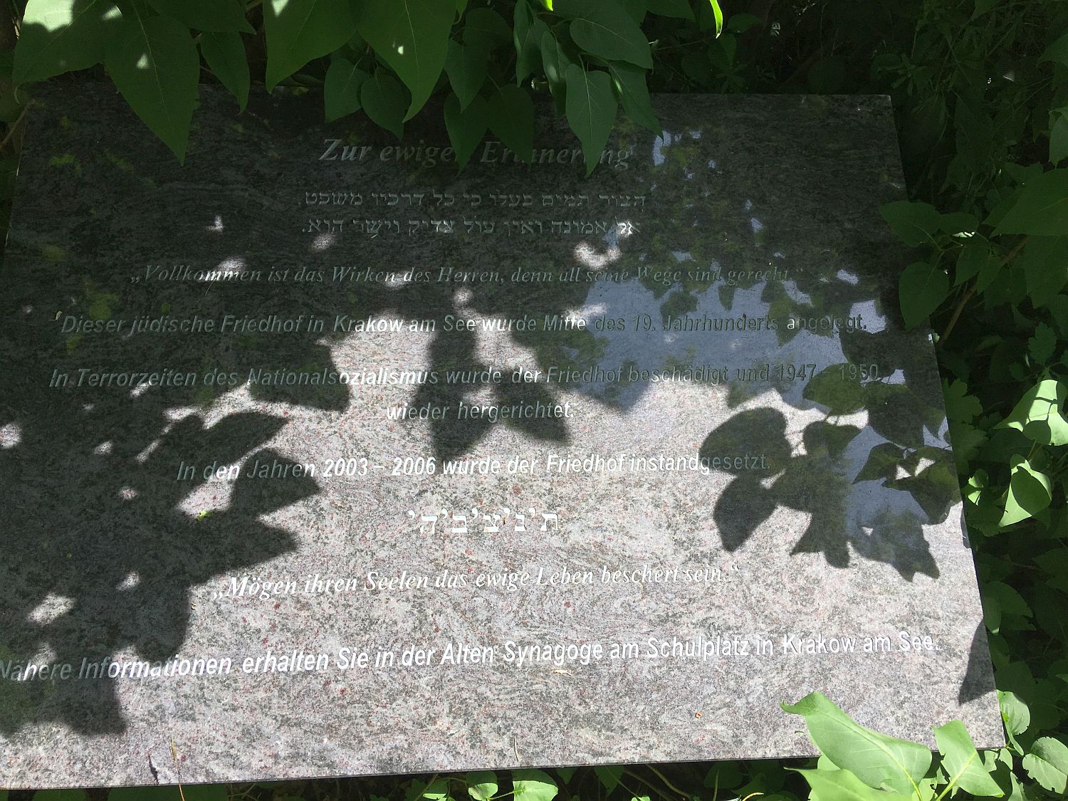 Siehe auch die Seite http://www.juden-in-mecklenburg.de/Friedhoefe/Juedischer_Friedhof_Krakow_am_See