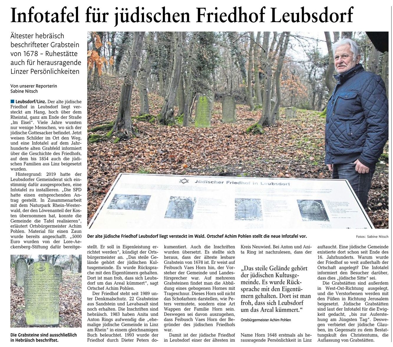 von Sabine Nitsch in der "Rhein-Zeitung" vom 9. Januar 2021: "Infotafel für