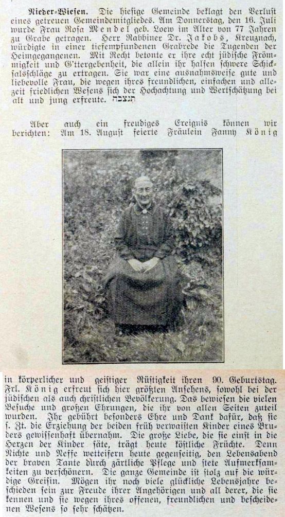 im "Israelitischen Familienblatt" vom 1. August 1935: "Nieder-Wiesen.