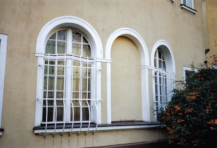 vielfach nachlackierten Fensterrahmen hat im Kontrast zum Neubau etwas
