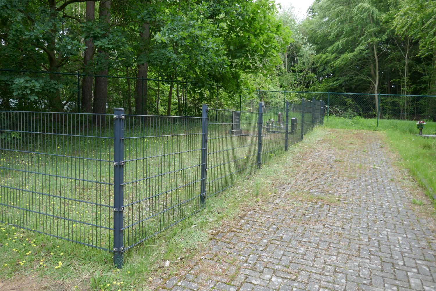 Das Friedhofsgrundstück war durch Zaun und Tor abgesichert. Eine Leichenhalle
