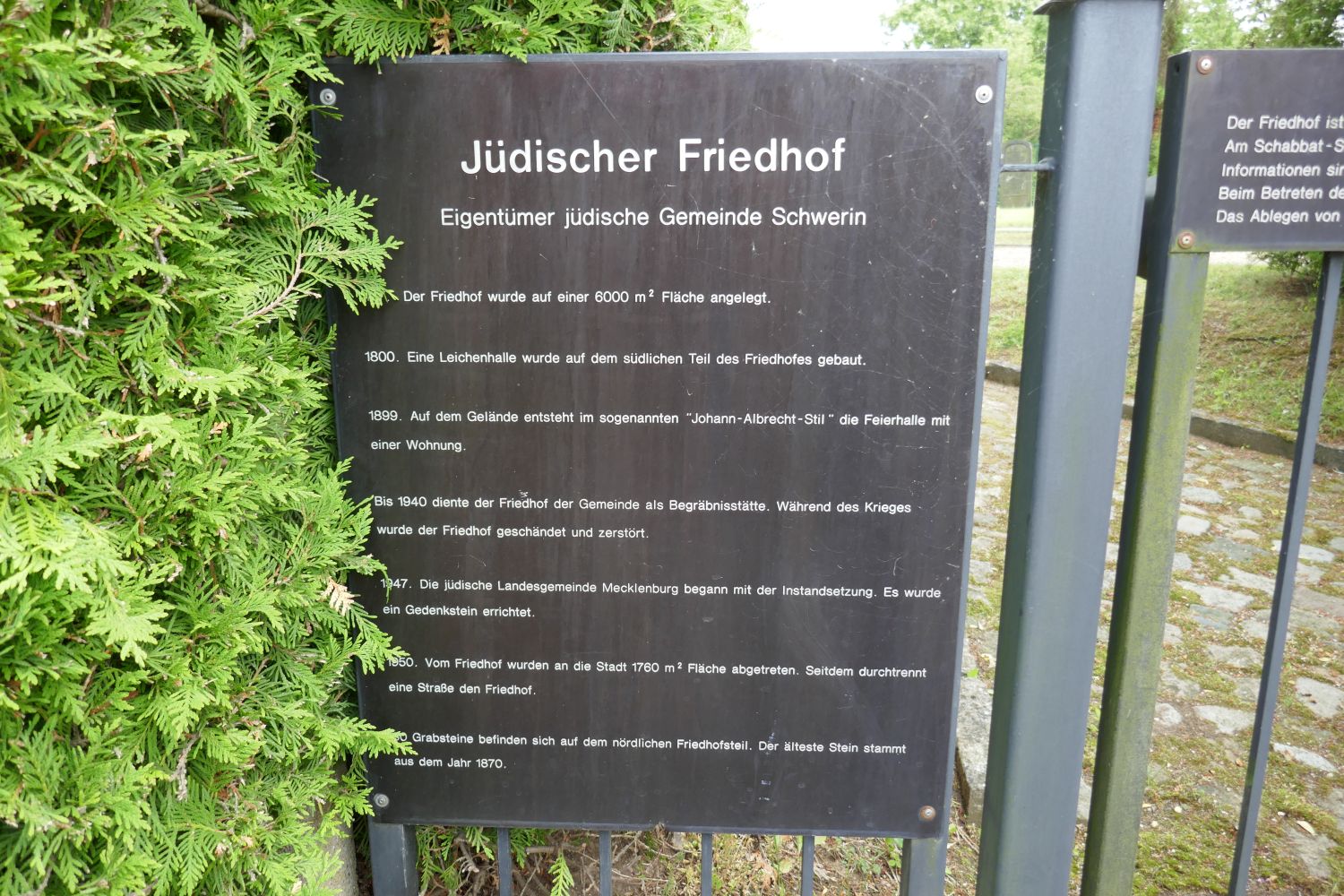 Hinweistafeln für die Besucher des Friedhofes und zur Geschichte des