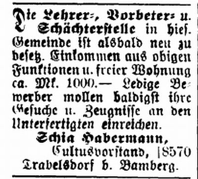 Kultusgemeinde Trabelsdorf inne. Zwei Jahre später, am 11. Mai 1906,