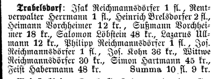 An die Mitglieder der ehemaligen jüdischen Gemeinden Trabelsdorf und Lisberg