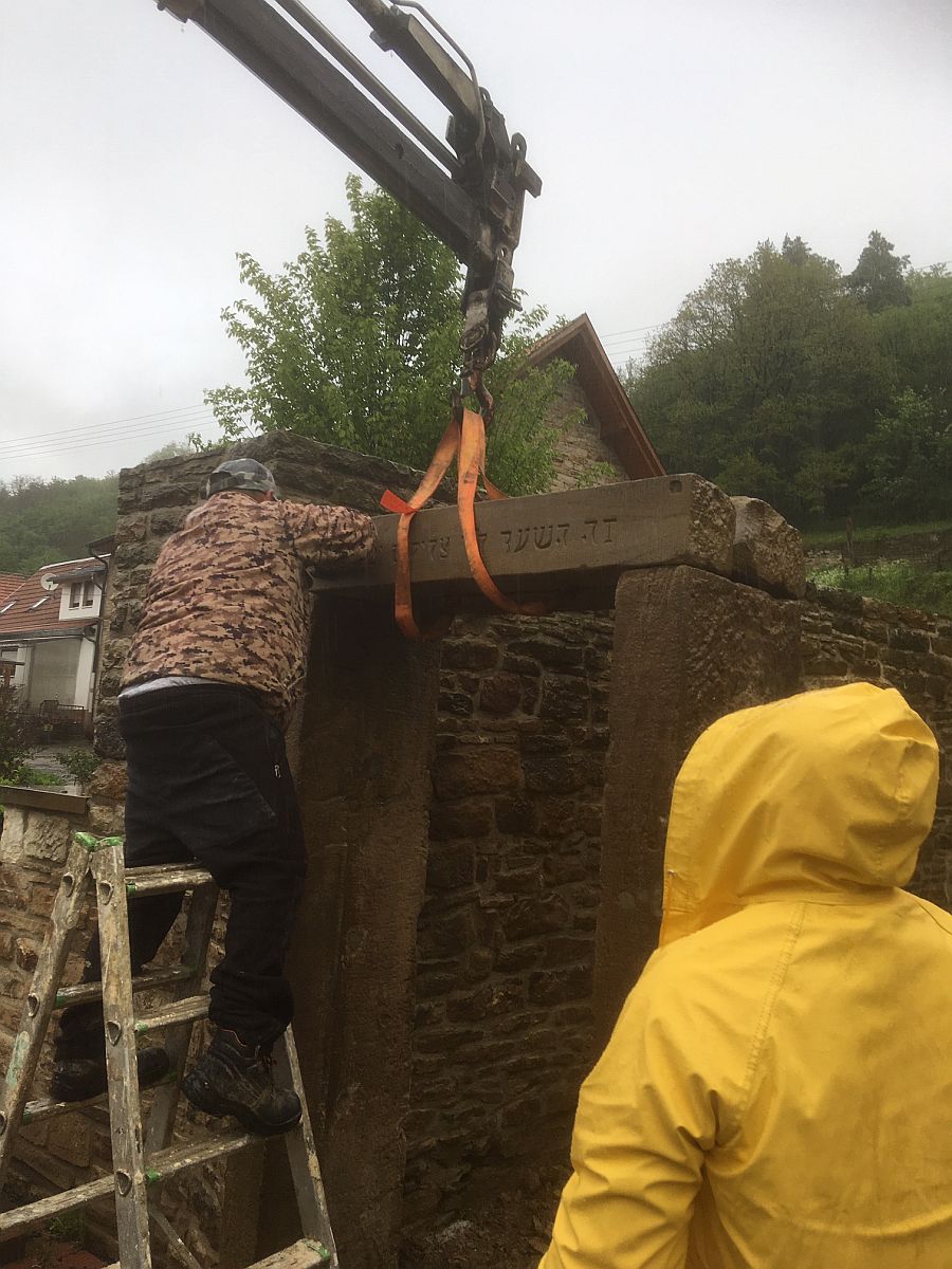 Türsturz mit der Portalinschrift der früheren Synagoge wird ergänzt