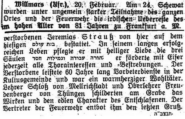 Gemeinde gehörte von 1840 bis 1892/93 zum Rabbinatsbezirk Gersfeld,